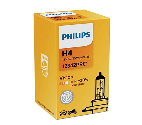 De Philips H4 Vision halogeenlamp biedt tot 30% meer licht dan standaardlampen. Ideaal als vervanging voor uw huidige koplampen en perfect voor wie veilig én voordelig wil rijden.